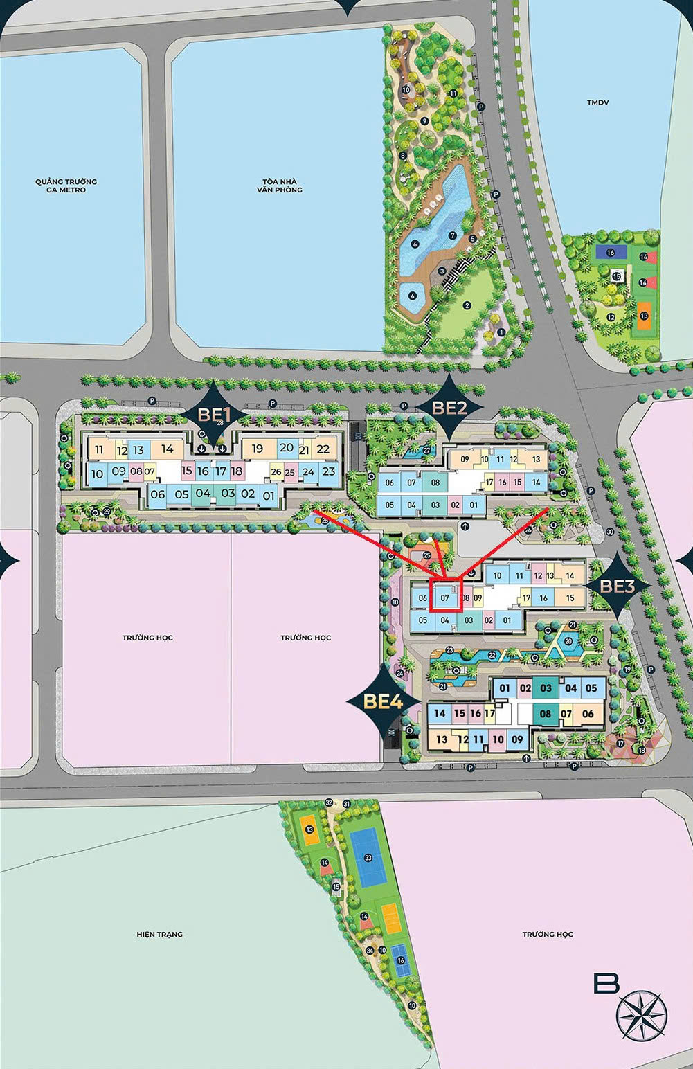 Căn tầng đẹp, view thoáng, hướng mát. Vị trí cực tiện: đi bộ ra ga metro, toà văn phòng tương lai; con cái đi bộ tới 4 trường liên cấp; rèn luyện sức khỏe mỗi ngày tại sông San Hô với hơn 200 máy tập hiện đại.